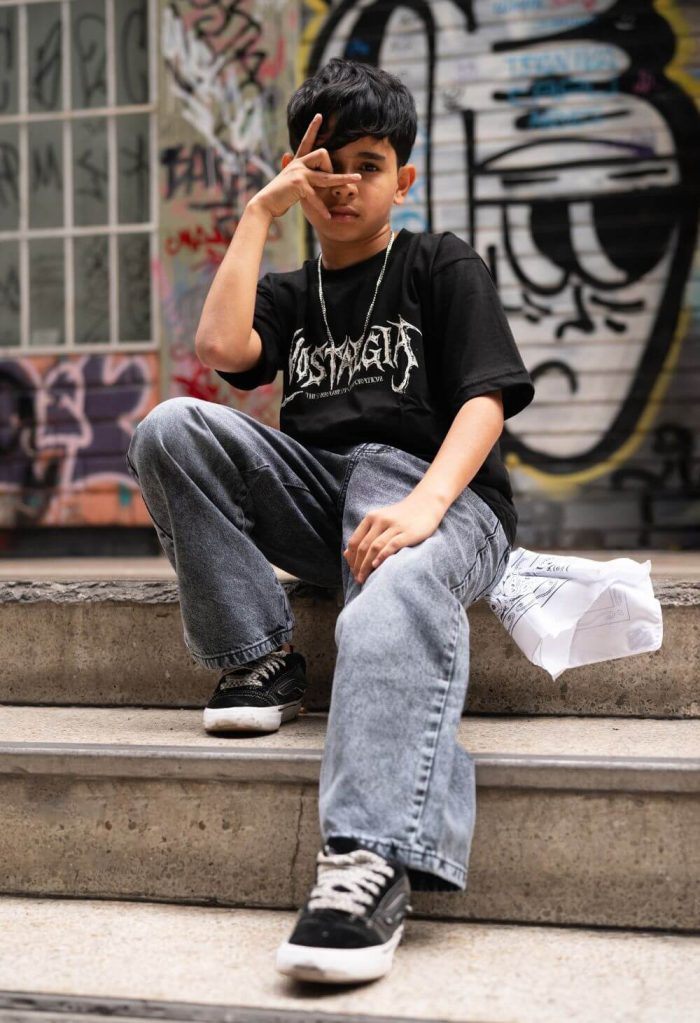 Pack Kids: Pantal贸n Super Baggy Jean Vintage + 2 Polos boxy/over