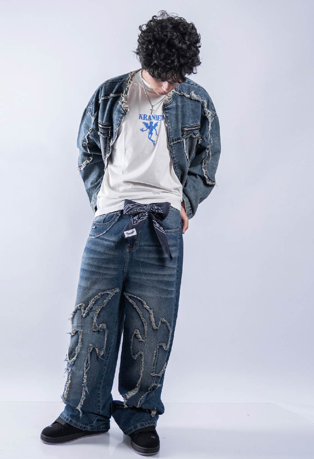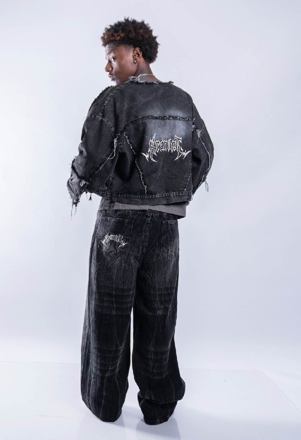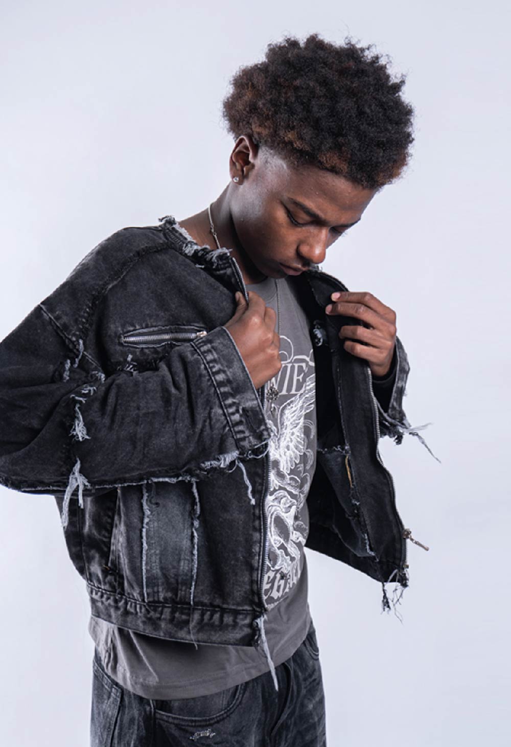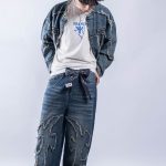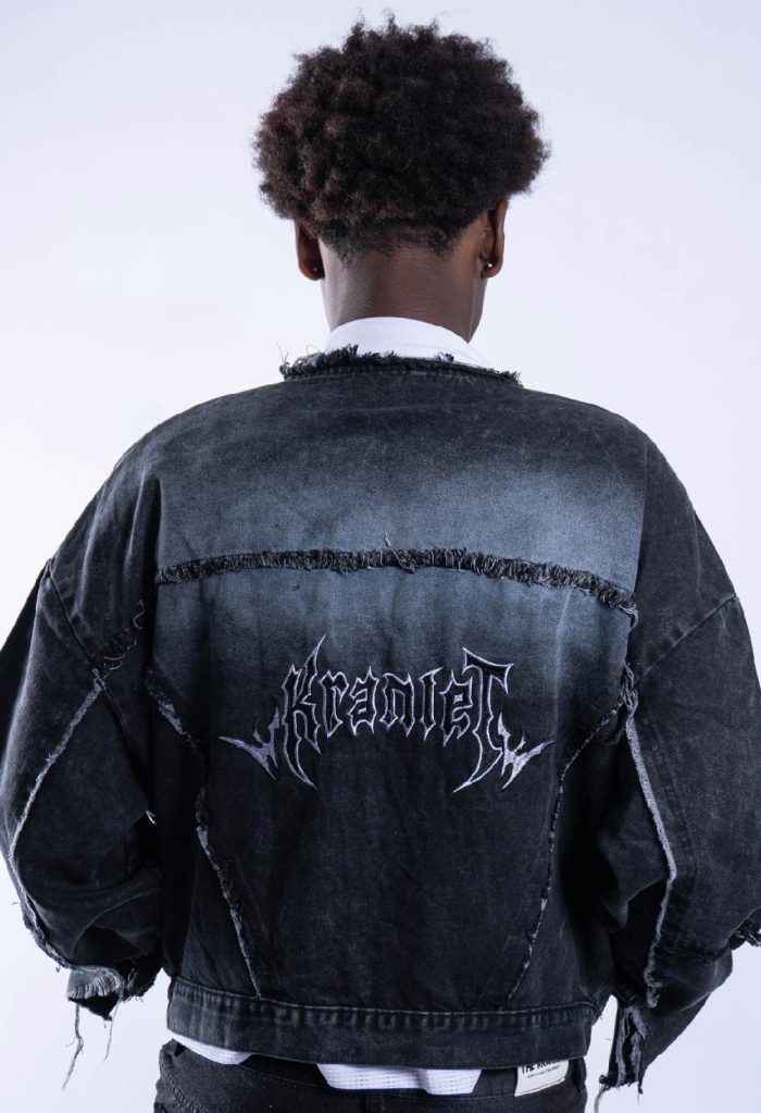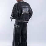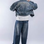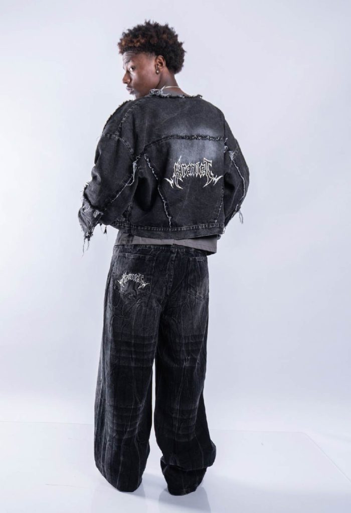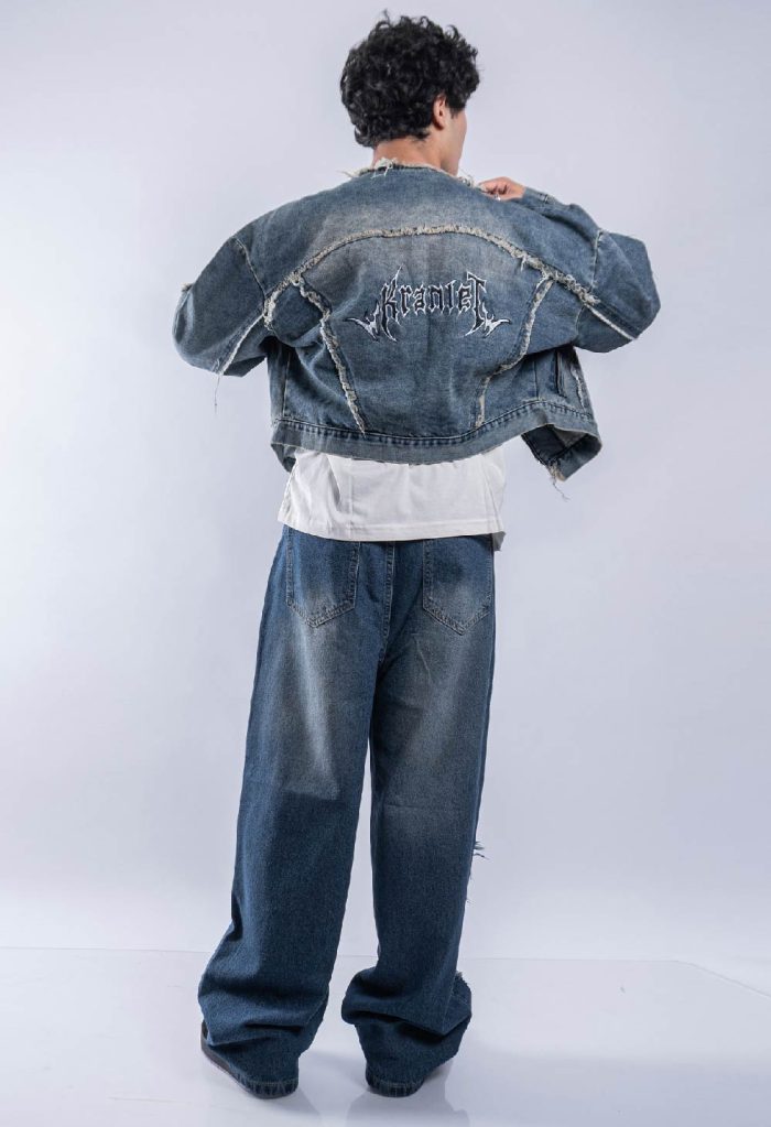 *Jacket jean tela Denim r铆gido de 10 a 14OZ, alta calidad.Con reactivo. Con bordado en la espalda. con detalles de ragados